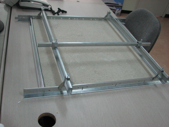 ② MAIN 및 CROSS ST'L T-BAR를 설치 완료한 후 흡음텍스 또는 지바트를그 위에 얹는다.