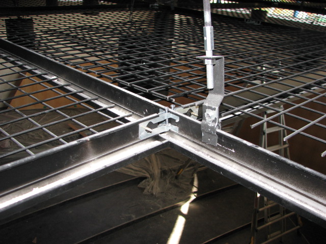 휘트니스 센타, 할인매장등 높은 천장과 넓은 바닥을 갖고 소음이 있는 장소에 많이 쓰이는 메탈 메쉬 천장판을 더욱 간편하게 시공할 수 있도록 개발한 알루미늄 T ?BAR 시스템으로 특수하게 고안된 T-BAR와 T-CLIP 및 직접 현수 하도록 개발된 행어 시스템 등 완벽한 메쉬 천장을 갖추도록 하여 줍니다.